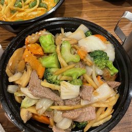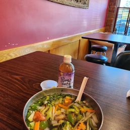 A little hidden gem in a strip mall. Only a couple of tables do plan on carry out all the standards are here. Just a heads up the less spicy stilll has done heat.