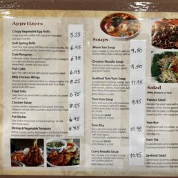 Everything we have ordered is consistently good. Mainly a takeout place but there are a few tables for seating. We have only done take out and have ordered many times. It's our favorite thai restaurant. We usually order pad thai, pad kee mao, papaya salad (delicious), fried rice, ginger chicken, basil chicken , Tom yum soup Highly recommend. I think it's the best thai place here